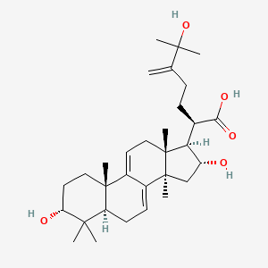 The compound is predominantly isolated from the sclerotia of the medicinal fungus Poria cocos (syn. Wolfiporia extensa), a traditional Chinese herb. Isolation typically involves ethanol extraction followed by chromatographic techniques such as silica gel column chromatography and preparative HPLC. Structural confirmation is achieved via NMR and mass spectrometry .