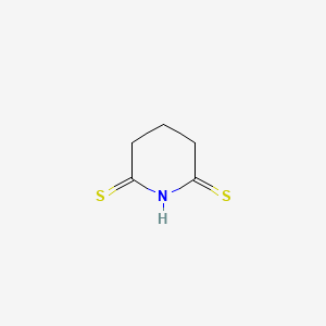 2,6-Piperidinedithione (C₅H₆N₂S₂) is a heterocyclic compound featuring a six-membered piperidine ring with two thione (C=S) groups at positions 2 and 6. The presence of sulfur atoms in the thione groups imparts distinct electronic and structural properties, such as enhanced polarizability and non-linear optical (NLO) activity, compared to oxygen-containing analogs like 2-piperidone.