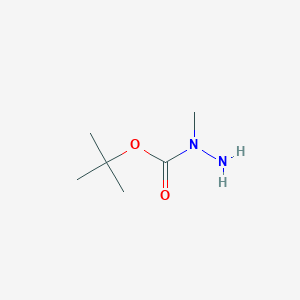 The chemical structure of this compound features a hydrazine nitrogen atom substituted with both a methyl group and a tert-butoxycarbonyl (Boc) protecting group. This configuration sterically hinders and deactivates one of the nitrogen atoms, allowing for selective reactions at the terminal NH2 group.
