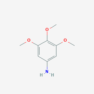 3,4,5-Trimethoxyaniline is a tri-substituted aromatic amine that serves as a crucial building block in synthetic organic chemistry. Its unique structure, featuring a benzene ring functionalized with an amino group and three methoxy groups, imparts specific chemical properties that make it a valuable intermediate in the synthesis of a wide array of complex molecules. This guide provides a comprehensive overview of its chemical and physical properties, detailed experimental protocols for its synthesis and analysis, and insights into its applications, particularly in the pharmaceutical sector. It is noted for its role as a precursor to novel anticancer agents and is described as having sympatholytic activity.[1]