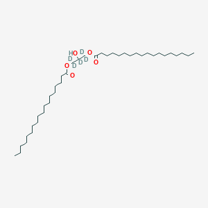 This compound is a deuterated analog of 1,3-distearoylglycerol, a diacylglycerol containing two stearic acid (18:0) chains. The "-d5" designation indicates that five hydrogen atoms on the glycerol backbone have been replaced with deuterium. This isotopic labeling makes it an ideal internal standard for mass spectrometry-based lipidomics, as it is chemically identical to its endogenous counterpart but can be distinguished by its higher mass.
