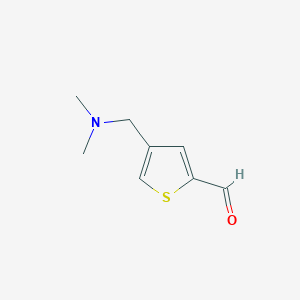4-[(Dimethylamino)methyl]thiophene-2-carbaldehyde is a heterocyclic organic compound featuring a thiophene ring substituted with a dimethylaminomethyl group at the 4-position and a formyl group at the 2-position. This structure confers unique electronic and steric properties, making it valuable in medicinal chemistry, materials science, and synthetic intermediates. The dimethylamino group enhances electron-donating capabilities, influencing reactivity in nucleophilic additions and coordination chemistry, while the aldehyde group serves as a versatile functional group for further derivatization .