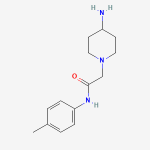 The mechanism of action of 2-(4-aminopiperidin-1-yl)-N-(4-methylphenyl)acetamide involves its interaction with specific molecular targets, such as receptors or enzymes. The compound may bind to these targets, modulating their activity and triggering a cascade of biochemical events. The exact pathways and molecular targets involved depend on the specific application and context in which the compound is used.