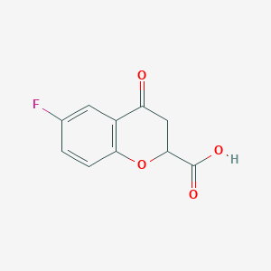 This compound possesses the chemical formula C₁₀H₇FO₄ and a molecular weight of approximately 210.16 g/mol . The molecule consists of a fluorinated chromanone backbone with a carboxylic acid substituent at the 2-position. The presence of a chiral center at the C2 position gives rise to two enantiomers, (S)- and (R)-6-fluoro-4-oxochroman-2-carboxylic acid.