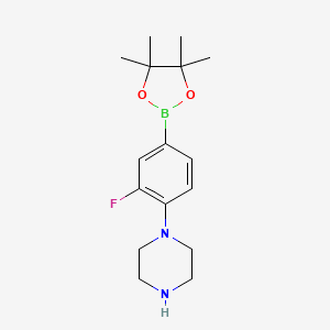 InChI=1S/C16H24BFN2O2/c1-15(2)16(3,4)22-17(21-15)12-5-6-14(13(18)11-12)20-9-7-19-8-10-20/h5-6,11,19H,7-10H2,1-4H3 |