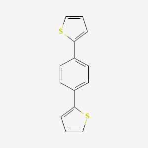This compound, also known by its synonym 1,4-bis(2-thienyl)benzene, represents a fundamental structure within the thiophene-phenylene co-oligomer family. Its linear and symmetrical structure consists of a central phenylene ring flanked by two thiophene rings. This compound and its derivatives have been the focus of numerous studies to understand the structure-property relationships in this class of materials. Research has explored how modifications to this basic architecture, such as the addition of substituent groups, impact its performance in electronic devices. acs.orgresearchgate.net Theoretical studies have also been employed to predict and understand the geometrical and electronic properties of these oligomers, providing insights for the design of new materials with enhanced functionalities for optoelectronic applications. nih.gov