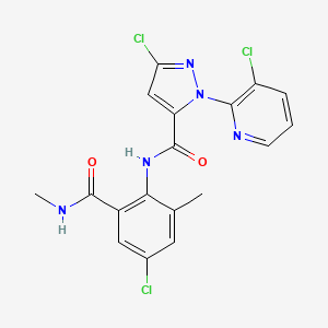 1H-Pyrazole-5-carboxamide,3-chloro-N-[4-chloro-2-methyl-6-[(methylamino)carbonyl]phenyl]-1-(3-chloro-2-pyridinyl)- is a complex organic compound with significant applications in various scientific fields. This compound is characterized by its unique structure, which includes multiple chloro, pyridine, and pyrazole groups, making it a valuable subject for research and industrial applications.