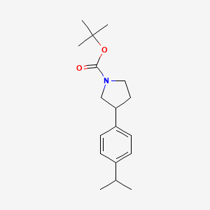 1-Boc-3-(4-isopropylphenyl)pyrrolidine can be synthesized through various synthetic routes. One common method involves the reaction of 3-(4-isopropylphenyl)pyrrolidine with di-tert-butyl dicarbonate (Boc2O) in the presence of a base such as triethylamine. The reaction typically occurs at room temperature and yields the desired Boc-protected product .
