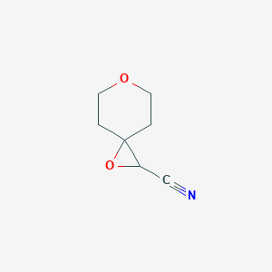 The unique three-dimensional structure of this compound, which combines a rigid spiroketal framework with the versatile reactivity of an epoxide and a nitrile group, makes it a valuable building block in synthetic organic chemistry. Its sp³-rich core is a desirable feature for moving beyond the flat, aromatic structures that have traditionally dominated medicinal chemistry. researchgate.net The inherent structural rigidity of spirocycles can also be advantageous for minimizing the conformational entropy cost associated with binding to protein targets. researchgate.net A closely related compound, 4-Methyl-1,6-dioxaspiro[2.5]octane-2-carbonitrile, has been identified as a building block for creating more complex molecules, underscoring the synthetic potential of this class of compounds. smolecule.com
