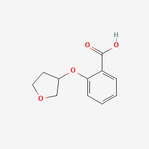 2-(Tetrahydrofuran-3-yloxy)benzoic acid is a benzoic acid derivative featuring a tetrahydrofuran (THF) ring attached via an ether linkage at the 3-position of the THF moiety and the 2-position of the benzoic acid backbone.