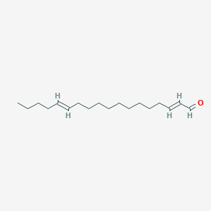The precise geometric configuration of the double bonds in (E,Z)-2,13-Octadecadienal is critical to its efficacy as a semiochemical. The specific arrangement of substituents around the double bonds, designated as E (entgegen, "opposite") or Z (zusammen, "together"), dictates the molecule's three-dimensional shape. This shape, in turn, determines how well the pheromone molecule fits into the specific olfactory receptors of the target insect species. Even minor changes, such as the conversion of one isomer to another, can lead to a significant or total loss of biological activity.