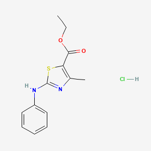 The synthesis of ethyl 2-anilino-4-methyl-1,3-thiazole-5-carboxylate hydrochloride typically involves the reaction of aniline derivatives with thiazole carboxylates under controlled conditions. One common method involves the use of ethyl 2-bromo-4-methylthiazole-5-carboxylate as a starting material, which is then reacted with aniline in the presence of a base such as potassium carbonate . The reaction is usually carried out in an organic solvent like dimethylformamide (DMF) at elevated temperatures.