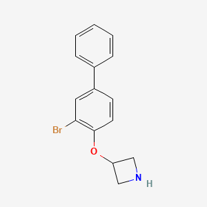 The synthesis of 3-Azetidinyl 3-bromo[1,1’-biphenyl]-4-yl ether typically involves the reaction of 3-bromo[1,1’-biphenyl]-4-ol with azetidine under specific conditions. The reaction is usually carried out in the presence of a base such as potassium carbonate and a suitable solvent like dimethylformamide (DMF). The reaction mixture is heated to facilitate the formation of the ether linkage between the azetidine and the biphenyl group.