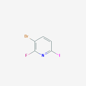 3-Bromo-2-fluoro-6-iodopyridine is a heterocyclic organic compound with the molecular formula . This compound features a pyridine ring substituted at the 2nd, 3rd, and 6th positions with fluorine, bromine, and iodine, respectively. Its unique structural properties make it a subject of interest in various fields, particularly in medicinal chemistry and agrochemical applications.