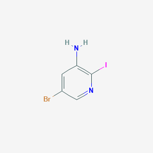 The mechanism of action of 5-Bromo-2-iodopyridin-3-amine involves its ability to participate in various chemical reactions due to the presence of both bromine and iodine atoms. These halogen atoms can be selectively replaced or modified, allowing the compound to interact with different molecular targets and pathways. The exact molecular targets and pathways depend on the specific application and the nature of the chemical reactions involved .