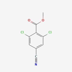 The synthesis of this compound typically involves the esterification of its corresponding carboxylic acid, 2,6-dichloro-4-cyanobenzoic acid. The presence of two chlorine atoms in the ortho positions to the carboxylic acid group presents significant steric hindrance, making standard esterification methods challenging.
