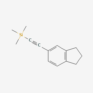 The synthesis of this compound is typically achieved via a Sonogashira cross-coupling reaction. This well-established palladium-catalyzed reaction forms a carbon-carbon bond between a terminal alkyne and an aryl or vinyl halide. In this case, the reaction couples 5-iodoindane with trimethylsilylacetylene.