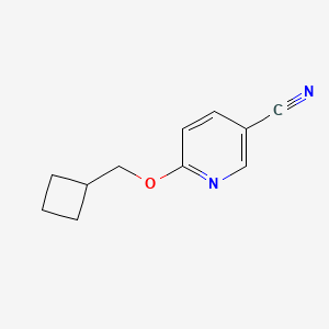 The synthesis of 6-(Cyclobutylmethoxy)nicotinonitrile typically involves the reaction of nicotinonitrile with cyclobutylmethanol under specific conditions. One common method is the use of a base such as potassium carbonate in an aprotic solvent like dimethylformamide (DMF) to facilitate the nucleophilic substitution reaction . The reaction is carried out at elevated temperatures to ensure complete conversion of the starting materials to the desired product.