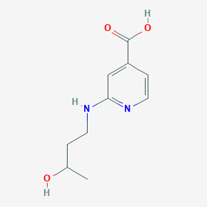 The mechanism of action of 2-[(3-Hydroxybutyl)amino]isonicotinic acid involves its interaction with specific molecular targets, such as enzymes or receptors. The amino group can form hydrogen bonds with active sites, while the carboxylic acid group can participate in ionic interactions. These interactions can modulate the activity of the target molecules, leading to various biological effects.