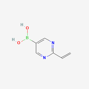 This compound emerges as a highly valuable synthetic intermediate by strategically combining the key features of both organoboron compounds and pyrimidine scaffolds. This bifunctional molecule possesses a boronic acid group at the 5-position of the pyrimidine ring, making it an ideal substrate for Suzuki-Miyaura cross-coupling reactions. This allows for the direct and efficient installation of the 2-vinylpyrimidine (B1277554) moiety onto a wide range of molecular frameworks. rsc.orgworktribe.com Simultaneously, the presence of the vinyl group at the 2-position offers a secondary site for chemical modification, for instance, through Heck-type reactions or polymerizations. The pyrimidine core itself imparts the desirable electronic and structural properties associated with this heterocycle, making the entire building block attractive for the synthesis of novel therapeutic agents and functional materials. researchgate.netbldpharm.com Its role as a key intermediate is underscored by the utility of similarly functionalized pyrimidine boronic acids in the synthesis of kinase inhibitors and other biologically active compounds. organic-chemistry.org