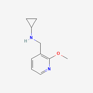 Cyclopropyl-(2-methoxy-pyridin-3-ylmethyl)-amine is a secondary amine featuring a cyclopropyl group linked via a methylene bridge to the 3-position of a 2-methoxypyridine ring. This compound is of interest in medicinal chemistry due to its structural versatility, which allows for modulation of electronic and steric properties. Key identifiers include: