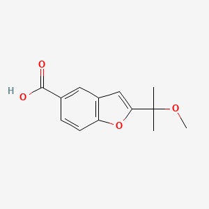 The mechanism of action of 2-(1-Methoxy-1-methylethyl)-benzofuran-5-carboxylic acid involves its interaction with specific molecular targets and pathways. The compound may exert its effects by binding to enzymes or receptors, thereby modulating their activity. The exact molecular targets and pathways can vary depending on the specific biological context and application.