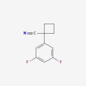 The mechanism of action of 1-(3,5-Difluorophenyl)cyclobutanecarbonitrile depends on its specific application. In general, the presence of fluorine atoms can enhance the compound’s stability and alter its electronic properties. This can affect how the compound interacts with molecular targets, such as enzymes or receptors, in biological systems. The cyclobutane ring provides a rigid framework that can influence the compound’s overall conformation and reactivity.