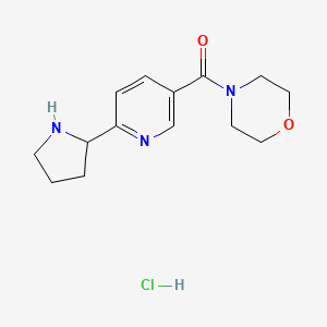 Morpholin-4-yl-(6-pyrrolidin-2-yl-pyridin-3-yl)-methanone hydrochloride possesses a complex nomenclature that reflects its intricate molecular architecture. The systematic name describes a methanone functional group that serves as a central linking unit between a morpholin-4-yl substituent and a 6-pyrrolidin-2-yl-pyridin-3-yl moiety. The hydrochloride designation indicates the presence of a chloride counterion, forming a stable salt structure that enhances the compound's solubility and handling characteristics.