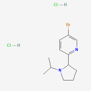 5-Bromo-2-(1-isopropylpyrrolidin-2-yl)pyridine dihydrochloride is a chemical compound notable for its structural features, which include a bromine atom and a 1-isopropylpyrrolidine moiety attached to a pyridine ring. This compound has garnered attention in medicinal chemistry due to its potential biological activities, including antimicrobial and antiviral properties.
