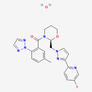[(2S)-2-[[3-(5-fluoropyridin-2-yl)pyrazol-1-yl]methyl]-1,3-oxazinan-3-yl]-[5-methyl-2-(triazol-2-yl)phenyl]methanone;hydrate |