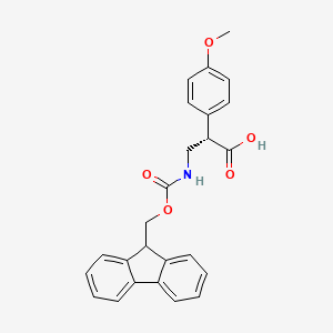 The mechanism of action of (S)-3-(9H-Fluoren-9-ylmethoxycarbonylamino)-2-(4-methoxy-phenyl)-propionic acid involves its interaction with specific molecular targets, such as enzymes and receptors. The Fmoc group can be selectively removed under mild conditions, allowing the compound to participate in subsequent reactions. The methoxyphenyl group can interact with hydrophobic pockets in proteins, influencing their activity and stability.