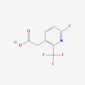 6-Fluoro-2-(trifluoromethyl)pyridine-3-acetic acid is a fluorinated pyridine derivative that has garnered attention due to its potential biological activities, particularly in the fields of medicinal chemistry and pharmacology. This compound is characterized by its unique structural features, including a fluorine atom and a trifluoromethyl group, which enhance its lipophilicity and biological interactions.