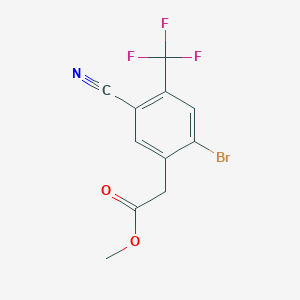 Methyl 2-bromo-5-cyano-4-(trifluoromethyl)phenylacetate is an organic compound with the molecular formula C11H7BrF3NO2 It is a derivative of phenylacetate, featuring a bromine atom, a cyano group, and a trifluoromethyl group attached to the aromatic ring