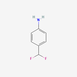 The difluoromethyl (CHF₂) group, positioned para to the amino group in 4-(difluoromethyl)aniline, exerts a significant influence on the electronic properties and reactivity of the aromatic ring. This influence stems primarily from the high electronegativity of the two fluorine atoms. The CHF₂ group acts as a moderate electron-withdrawing group, primarily through a negative inductive effect (-I). This effect reduces the electron density of the benzene (B151609) ring compared to aniline (B41778) itself.