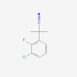 2-(3-Chloro-2-fluorophenyl)-2-methylpropanenitrile is an organic compound characterized by the presence of a chloro and fluoro substituent on a phenyl ring, along with a nitrile group attached to a methylpropanenitrile moiety