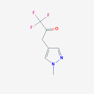The mechanism of action of 1,1,1-trifluoro-3-(1-methyl-1H-pyrazol-4-yl)propan-2-one involves its interaction with specific molecular targets and pathways. The trifluoromethyl group can enhance the compound’s ability to interact with biological targets, such as enzymes and receptors, by increasing its lipophilicity and metabolic stability . The pyrazole ring can also contribute to the compound’s binding affinity and specificity for certain targets.