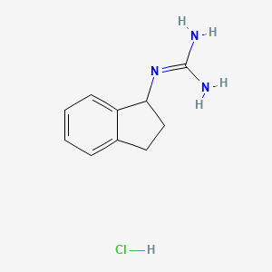 2-(2,3-Dihydro-1H-inden-1-yl)guanidine hydrochloride is a chemical compound that has garnered attention in scientific research due to its potential applications in various fields such as chemistry, biology, medicine, and industry. This compound is characterized by its unique structure, which includes a guanidine group attached to a 2,3-dihydro-1H-inden-1-yl moiety.