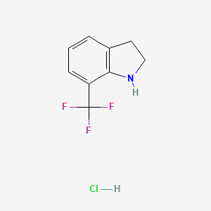 The mechanism of action of 7-(Trifluoromethyl)indoline hydrochloride involves its interaction with specific molecular targets. The trifluoromethyl group enhances the compound’s lipophilicity, allowing it to penetrate cell membranes more effectively. Once inside the cell, it can interact with enzymes or receptors, modulating their activity and leading to various biological effects.