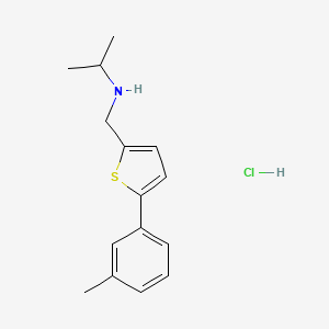 The mechanism of action of {[5-(3-Methylphenyl)thiophen-2-yl]methyl}(propan-2-yl)amine hydrochloride involves its interaction with specific molecular targets. The amine group can form hydrogen bonds with biological molecules, while the thiophene ring can participate in π-π interactions. These interactions can modulate the activity of enzymes or receptors, leading to the compound’s biological effects.