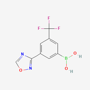 3-(Trifluoromethyl)-5-(1,2,4-oxadiazol-3-yl)phenylboronic acid is a boronic acid derivative that features a trifluoromethyl group and an oxadiazole ring. This compound is of interest due to its potential applications in various fields, including medicinal chemistry, materials science, and organic synthesis. The presence of the trifluoromethyl group imparts unique chemical properties, such as increased lipophilicity and metabolic stability, making it a valuable building block in drug discovery and development.