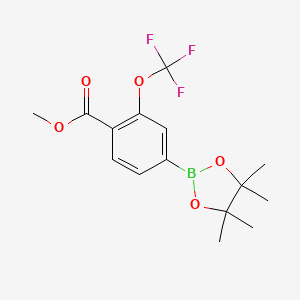 Methyl 4-(4,4,5,5-tetramethyl-1,3,2-dioxaborolan-2-yl)-2-(trifluoromethoxy)benzoate is a chemical compound that belongs to the class of boronic acid derivatives It is characterized by the presence of a boron atom within a dioxaborolane ring, which is attached to a benzoic acid methyl ester moiety substituted with a trifluoromethoxy group