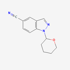 Uniqueness: 1-(Tetrahydro-2H-pyran-2-yl)-1H-indazole-5-carbonitrile is unique due to its specific combination of the tetrahydropyran ring and indazole core. This structural uniqueness imparts distinct chemical and biological properties, making it a valuable compound for various applications.