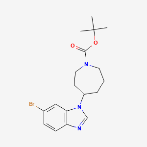 The mechanism of action of tert-butyl4-(6-bromo-1H-benzo[d]imidazol-1-yl)azepane-1-carboxylate involves its interaction with molecular targets such as enzymes or receptors. The benzoimidazole moiety can bind to active sites, inhibiting enzyme activity or modulating receptor function. The azepane ring may enhance the compound’s binding affinity and specificity .