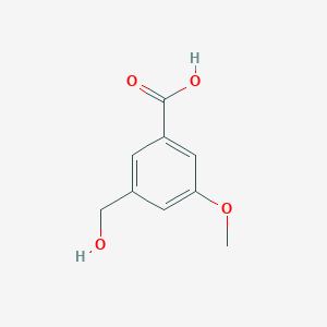 3-(Hydroxymethyl)-5-methoxybenzoic acid is a benzoic acid derivative characterized by a hydroxymethyl (-CH₂OH) group at the 3-position and a methoxy (-OCH₃) group at the 5-position of the aromatic ring. Its molecular formula is C₉H₁₀O₅, with a molecular weight of 198.17 g/mol.