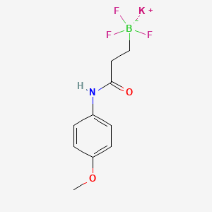 Potassium trifluoro(3-((4-methoxyphenyl)amino)-3-oxopropyl)borate is a boron-containing organometallic compound with the general structure K[BF₃(CH₂)₂C(O)NHC₆H₄-4-OCH₃]. It belongs to the class of trifluoroborate salts, which are widely used in cross-coupling reactions, catalysis, and medicinal chemistry due to their stability and tunable reactivity . The compound features a 4-methoxyphenyl group attached to an amide-linked propylborate backbone, with potassium as the counterion.