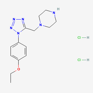 1-{[1-(4-ethoxyphenyl)-1H-tetrazol-5-yl]methyl}piperazine dihydrochloride is a synthetic compound that integrates a piperazine moiety with a tetrazole derivative. This compound has garnered attention due to its potential biological activities, particularly in medicinal chemistry. The tetrazole ring is known for its diverse pharmacological properties, including antimicrobial, anti-inflammatory, and anticancer effects.