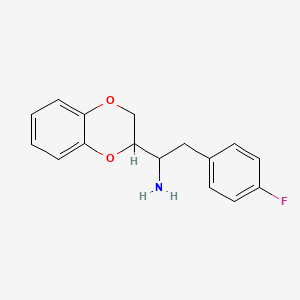 The preparation of 1-(2,3-Dihydro-1,4-benzodioxin-2-yl)-2-(4-fluorophenyl)ethan-1-amine typically involves multi-step organic synthesis starting from substituted benzodioxane derivatives and fluorophenyl-containing intermediates. The key steps include: