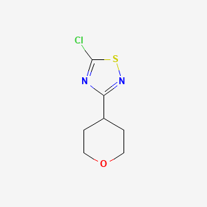 5-Chloro-3-(oxan-4-yl)-1,2,4-thiadiazole is a heterocyclic compound featuring a 1,2,4-thiadiazole core substituted at position 5 with a chlorine atom and at position 3 with an oxan-4-yl (tetrahydropyran-4-yl) group. The 1,2,4-thiadiazole ring system is characterized by a five-membered aromatic structure containing two nitrogen atoms and one sulfur atom, which imparts significant electronic and steric properties .