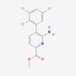 The mechanism of action of Methyl 6-amino-5-(2,3,5-trichlorophenyl)picolinate involves its interaction with specific molecular targets. The amino group and the trichlorophenyl group can form hydrogen bonds and hydrophobic interactions with proteins or enzymes, affecting their activity. The pyridine ring can also participate in π-π stacking interactions with aromatic residues in proteins. These interactions can modulate the biological activity of the compound and its derivatives.