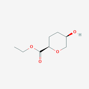 Ethyl cis-5-hydroxy-tetrahydro-pyran-2-carboxylate undergoes various chemical reactions, including oxidation, reduction, and substitution. Common reagents used in these reactions include oxidizing agents like potassium permanganate and reducing agents such as sodium borohydride. The compound can also participate in substitution reactions with nucleophiles, leading to the formation of various substituted derivatives . Major products formed from these reactions depend on the specific reagents and conditions used.